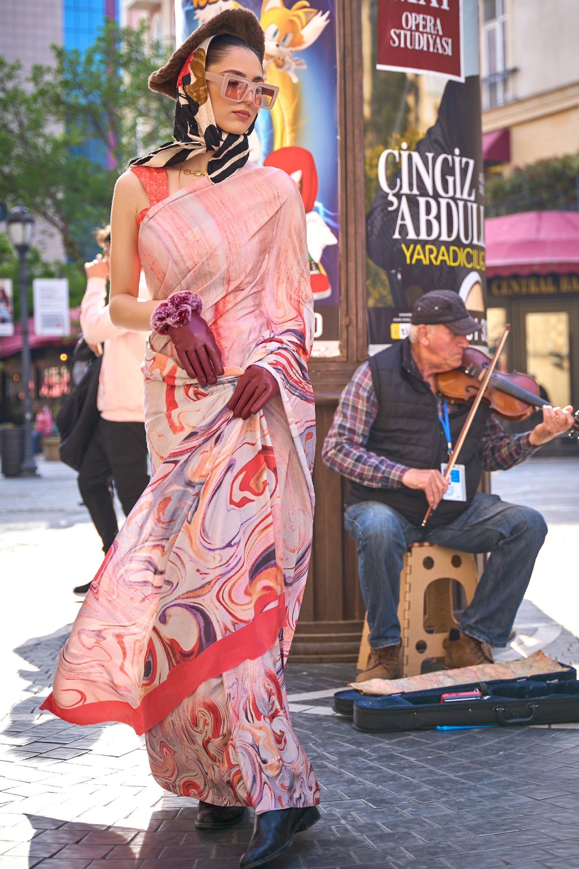 Beguiling Printed Work On Multi Color Crepe Fabric Casual Saree