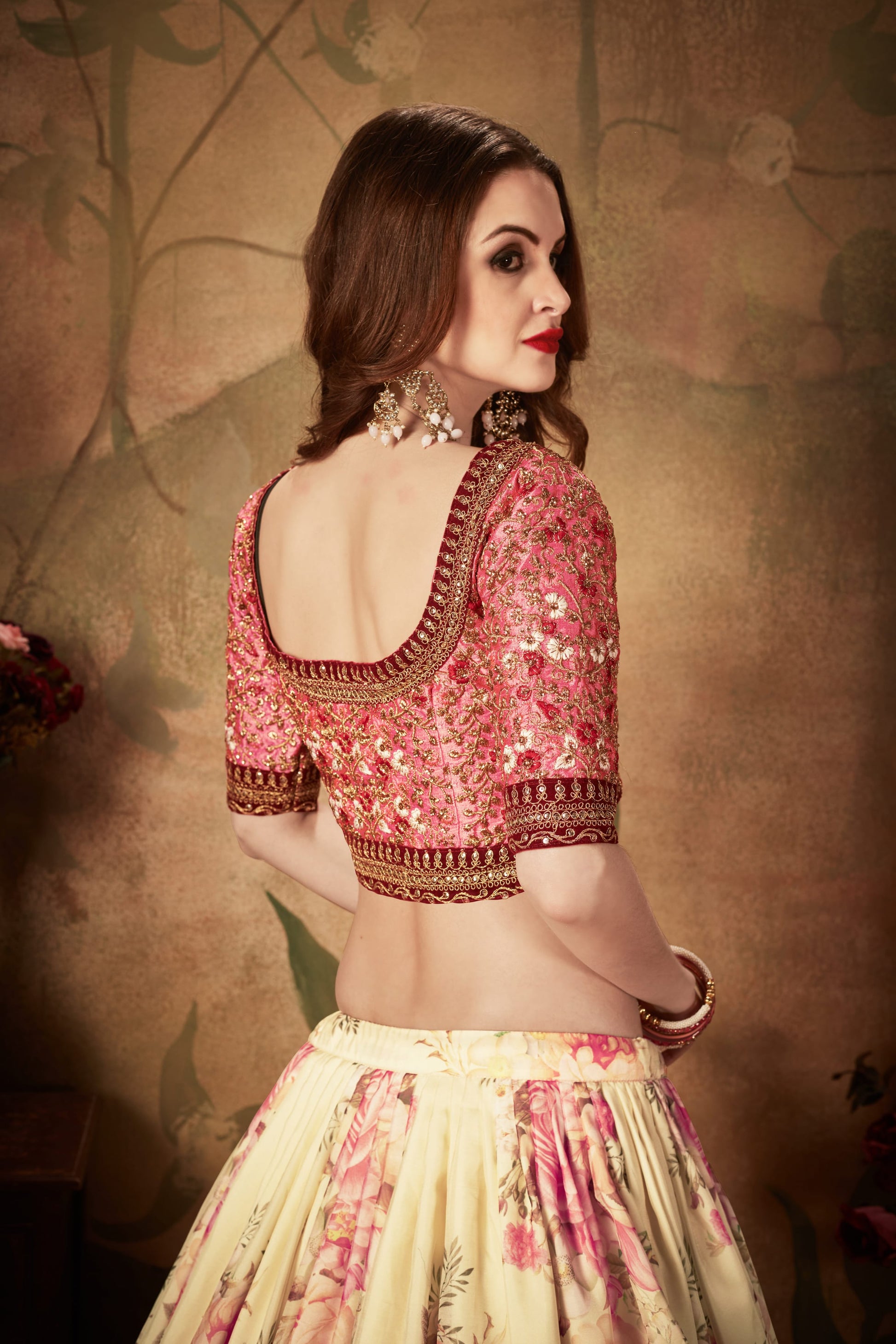 Beige Color Organza Digital Print & Dori, Zari and Sequins Embroidery Work Lehenga Choli