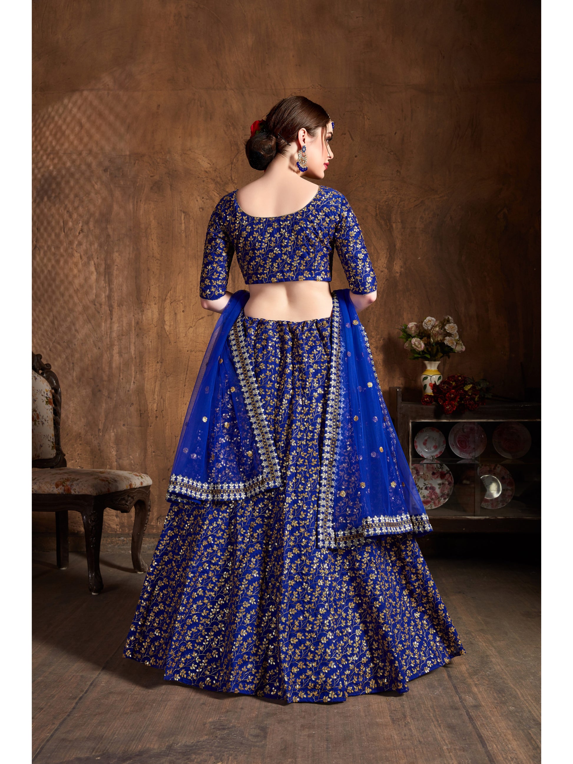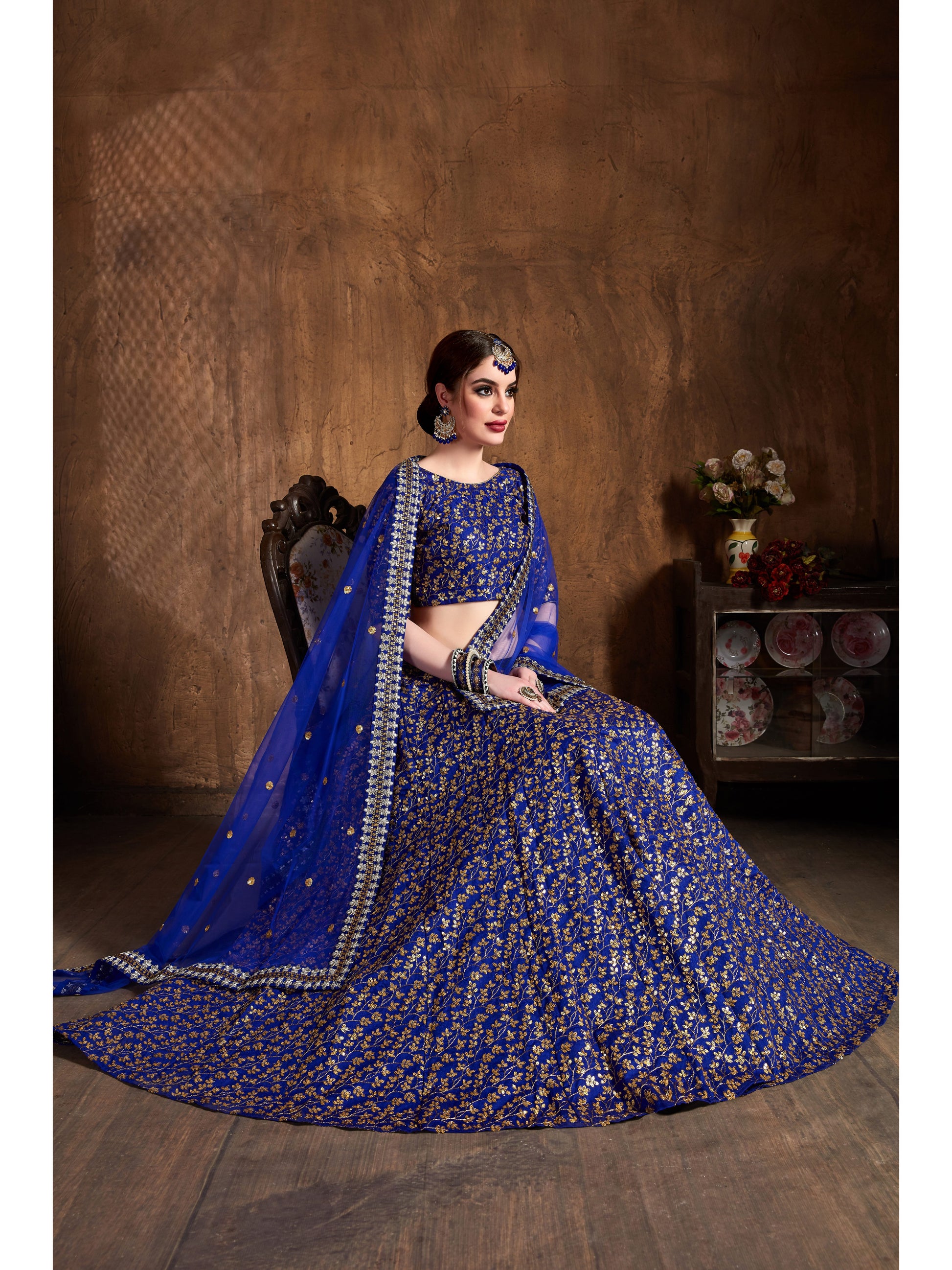 Text blockRoyal Blue Color ZARI AND SEQUINS HEAVY EMBROIDERY WORK Lehenga Choli