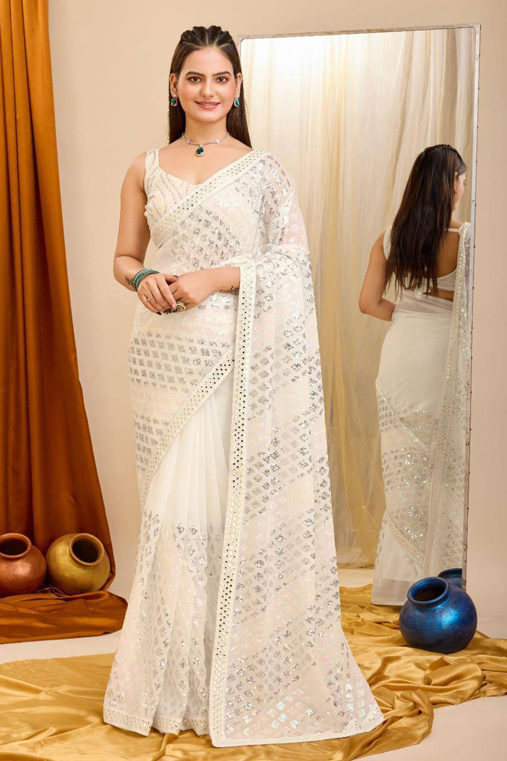 Function Wear Off White Color Beatific Georgette Saree