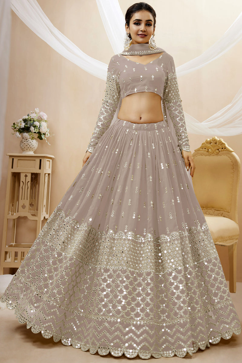 Text blockGrey Color Embroidered Work On Georgette Fabric Beatific Lehenga Choli