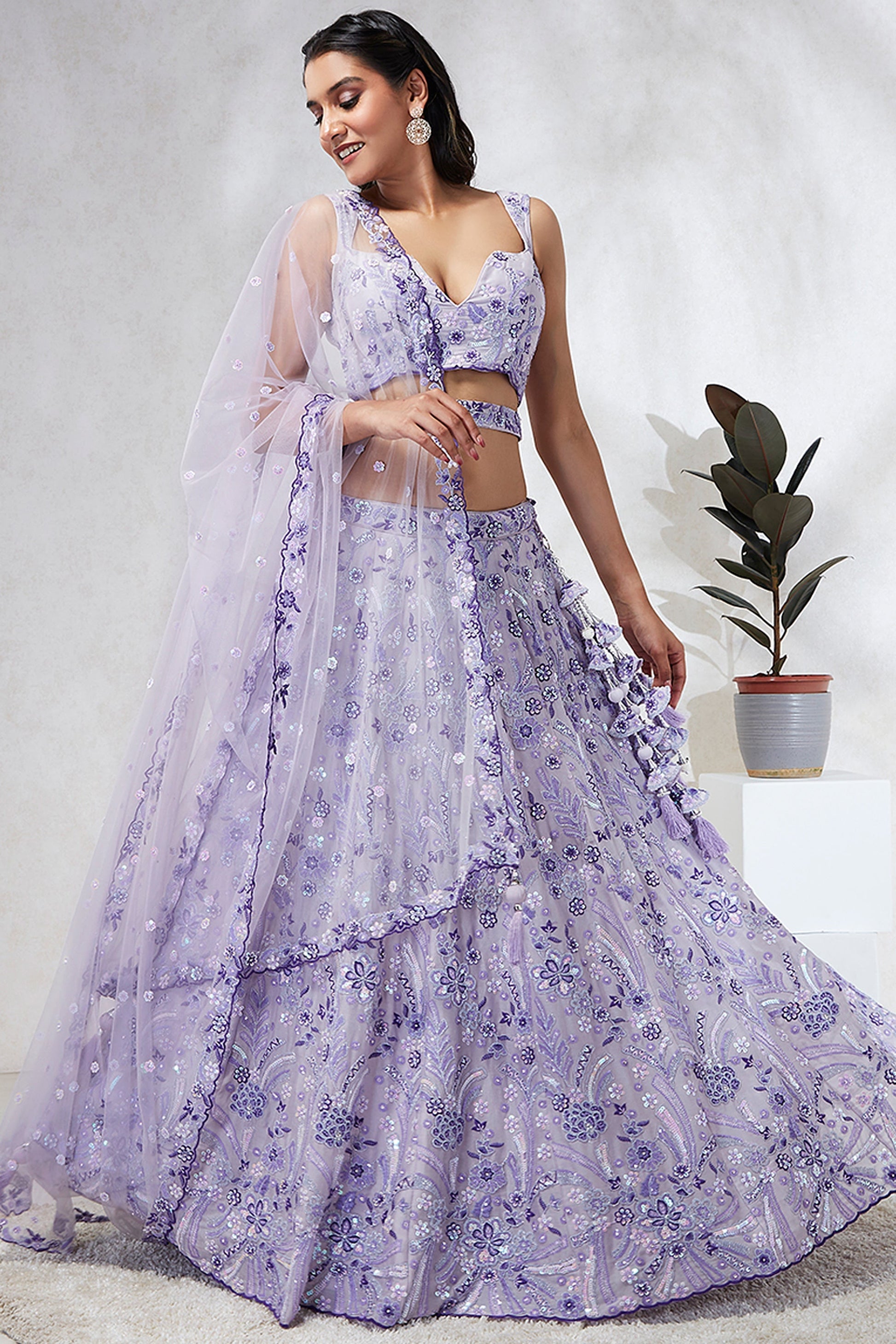 Text blockLavender Color Georgette Fabric Heavy Sequins Work Sangeet Wear Designer Lehenga Choli