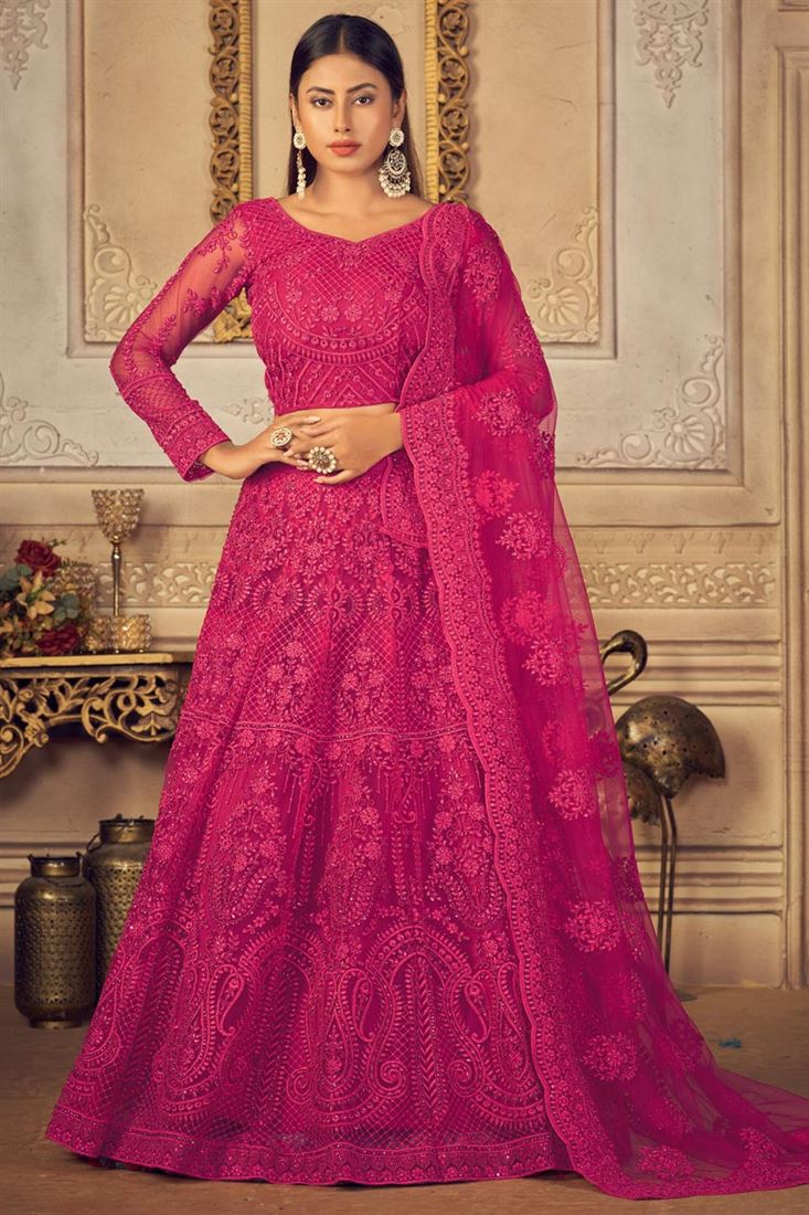 Lovely Rani Color Net Fabric Sangeet Wear Embroidered Lehenga Choli