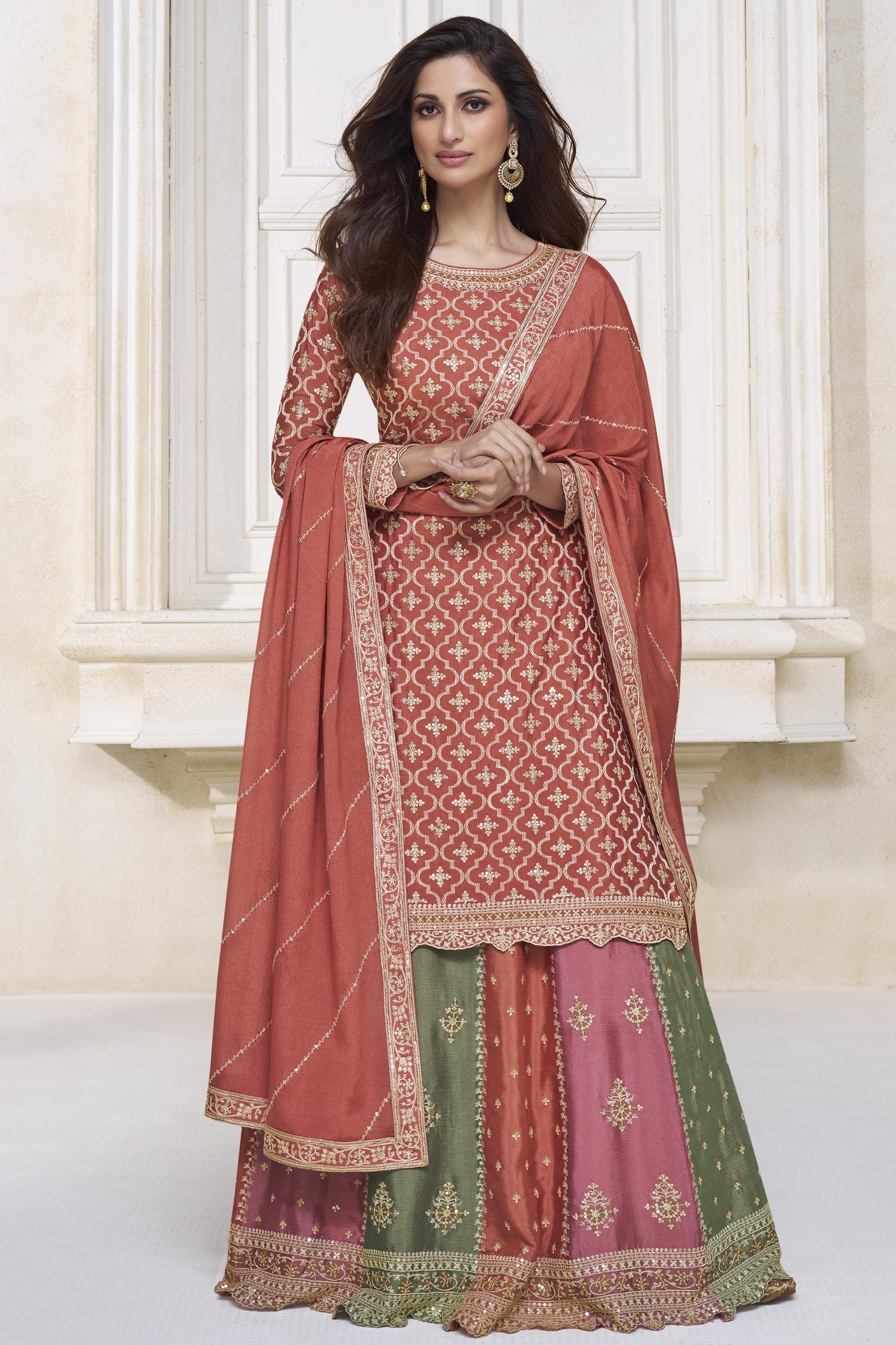 Looking for a gorgeous outfit that will make you stand out from the crowd? Our Chinon Silk Fabric Function Wear Readymade Designer Sharara Top Lehenga is just what you need. The stunning silk fabric is soft and drapes beautifully on the body, while the intricate embroidery work adds a touch of glamor and sophistication. The readymade design makes it easy to wear and perfect for any special occasion. Whether you're attending a wedding or a festive event, this outfit is sure to make you feel confident and beautiful.