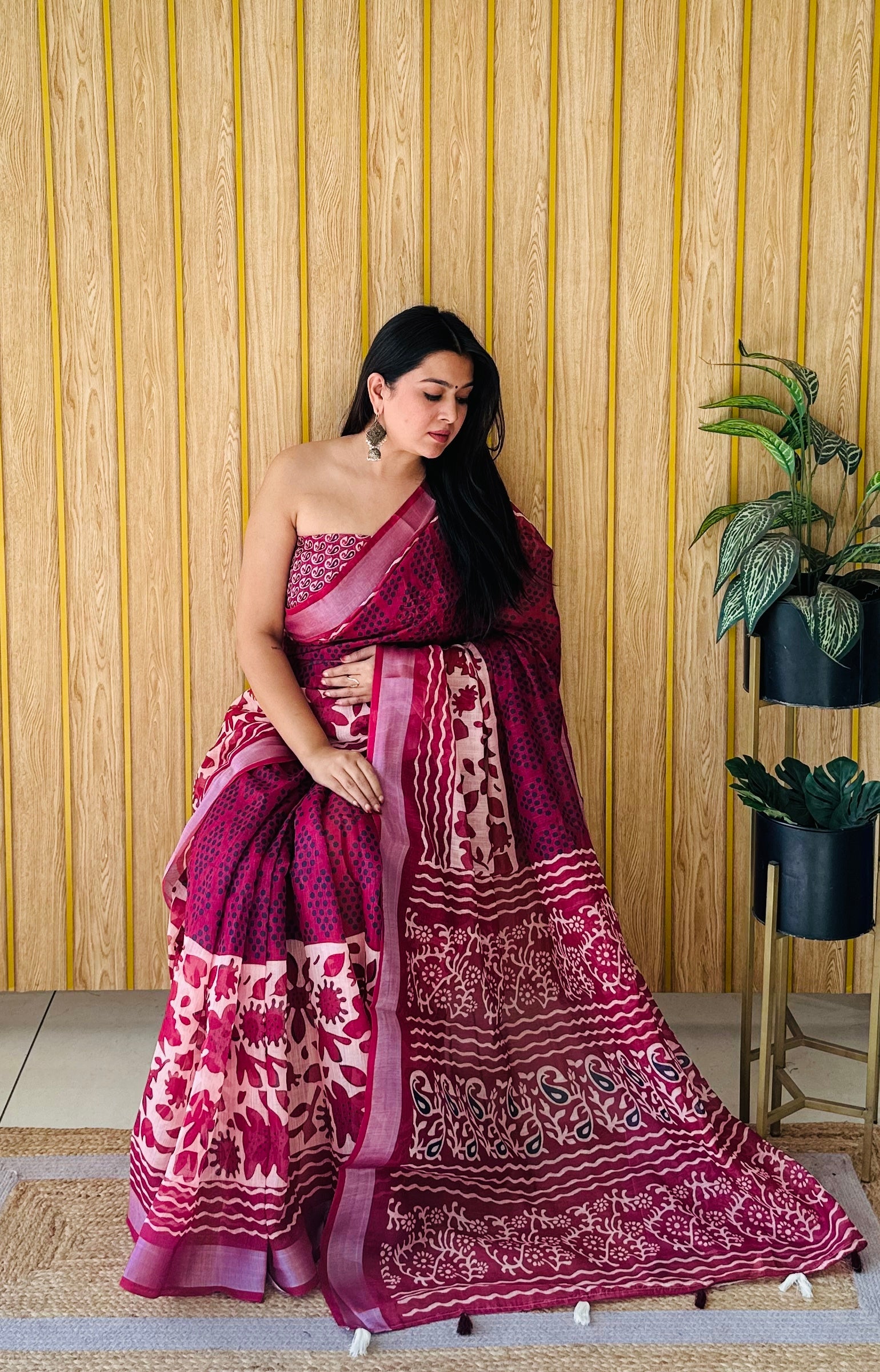 Text blockMaroon Color Premium And Rich Quality Soft Linen Cotton Digital Print Saree