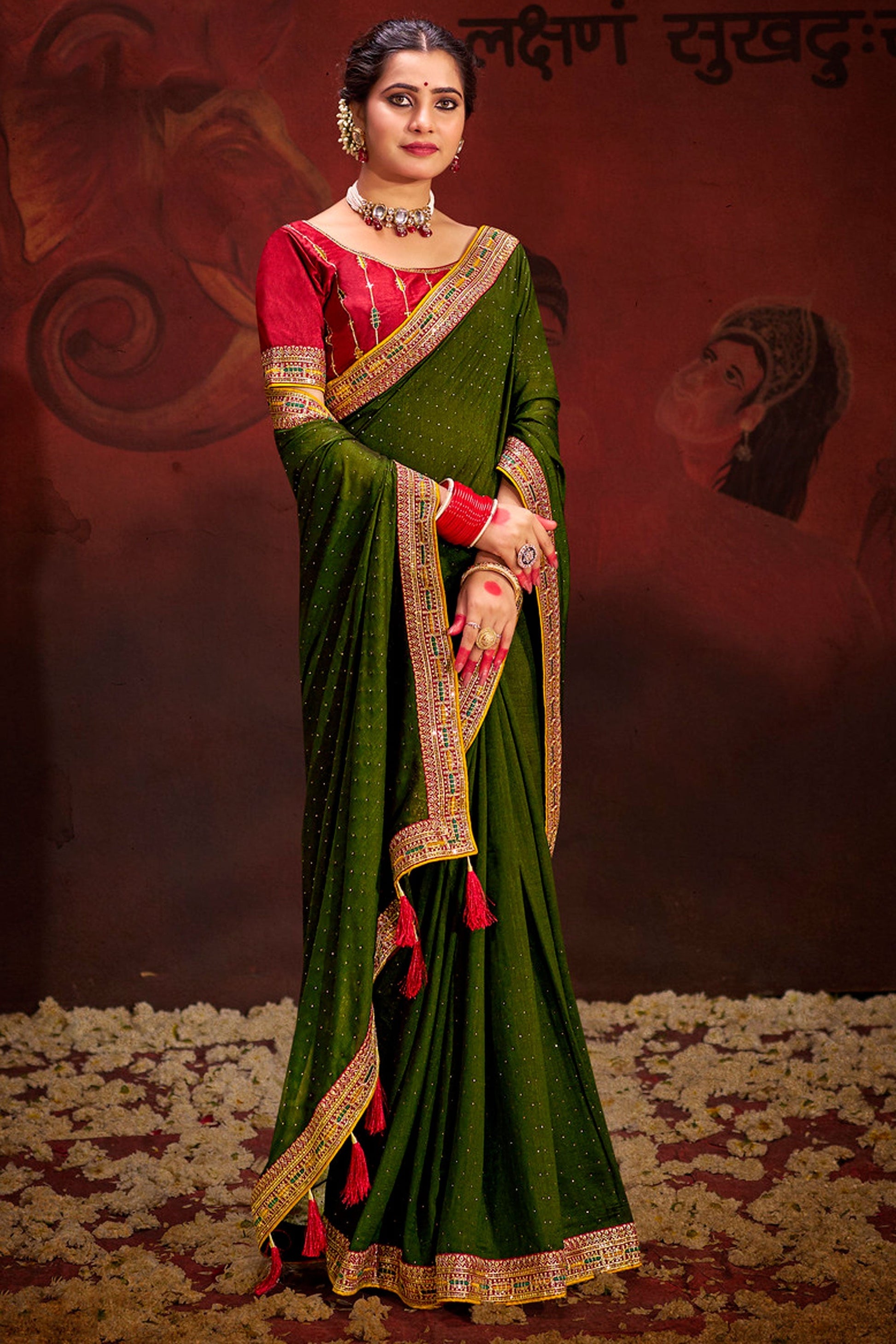 Mehendi Green Color Gorgeous Border Work Fancy Fabric Saree