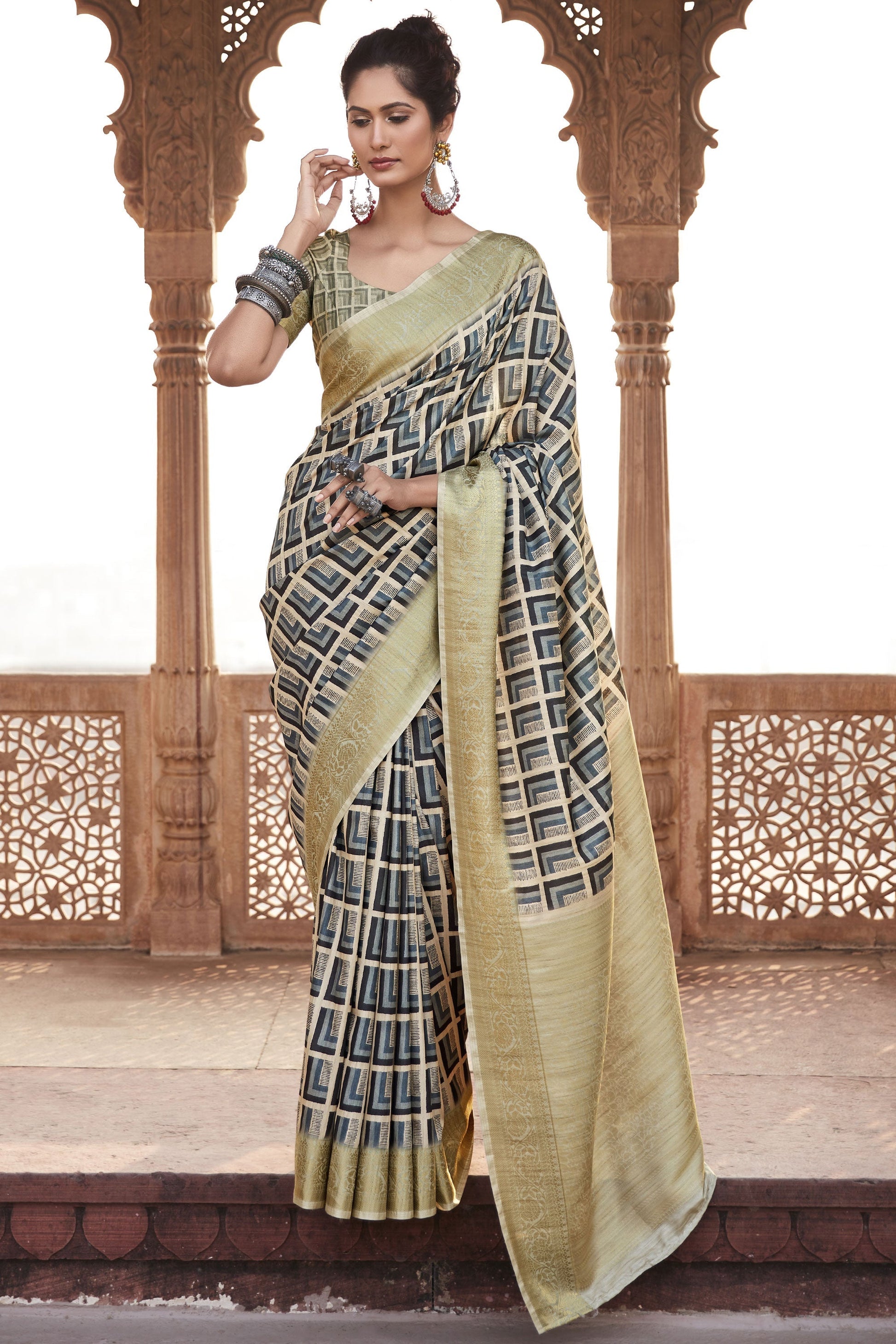 Text blockMulti Color Handloom Silk Printed Function Wear Fancy Saree