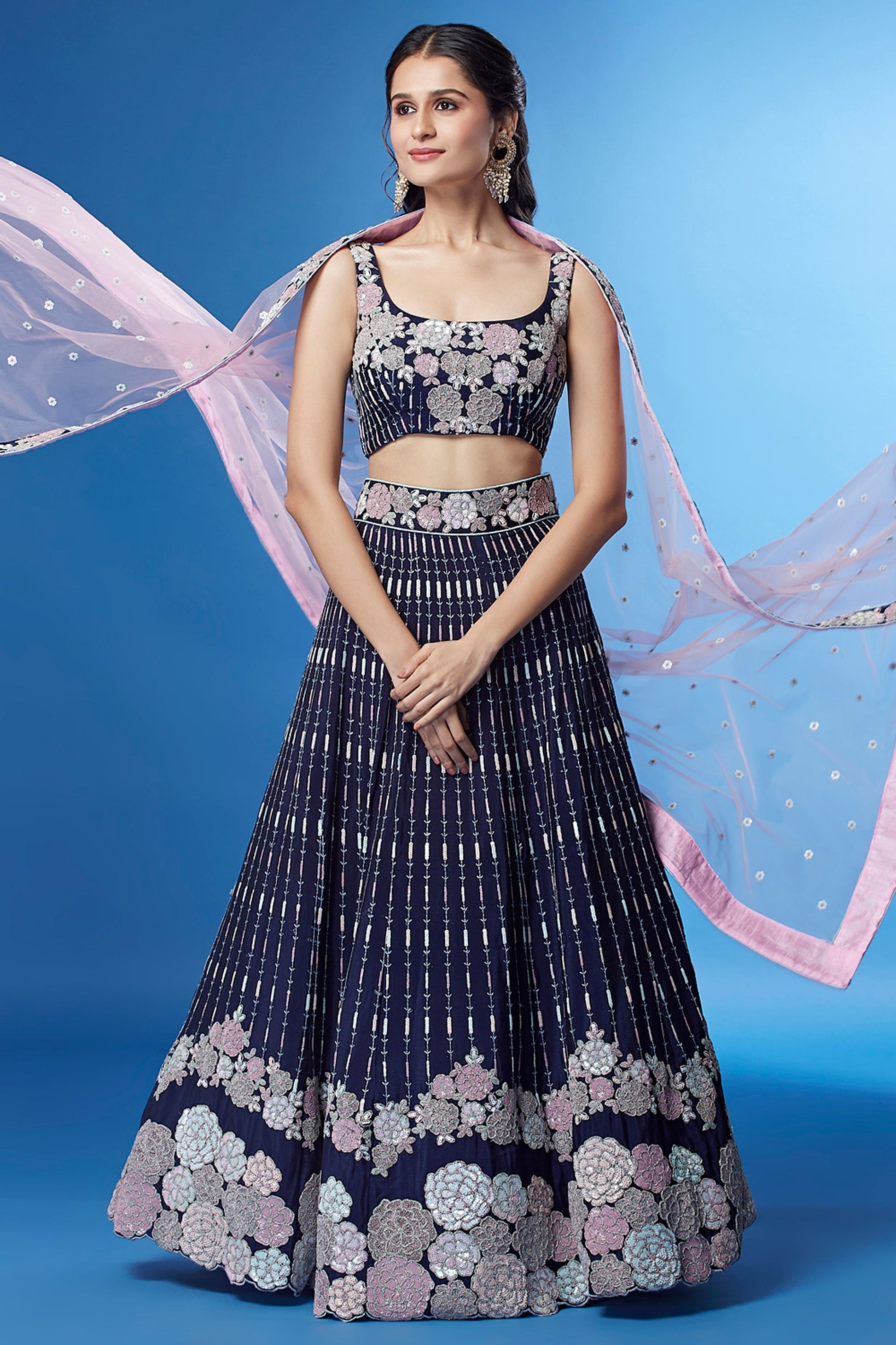 Text blockOccasion Wear Lehenga Choli In Navy Blue Georgette Fabric With Sequins Work