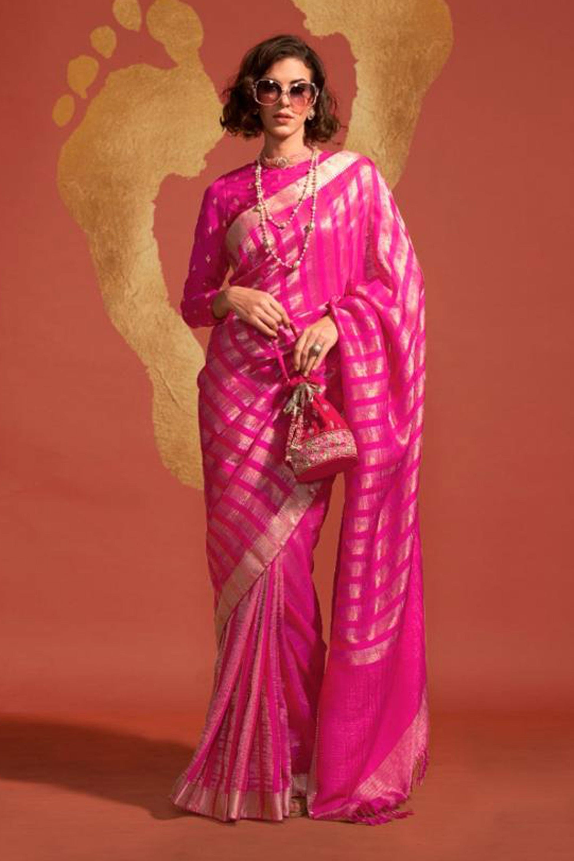 Phenomenal Viscose Handloom Weaving Silk Pink Color Saree