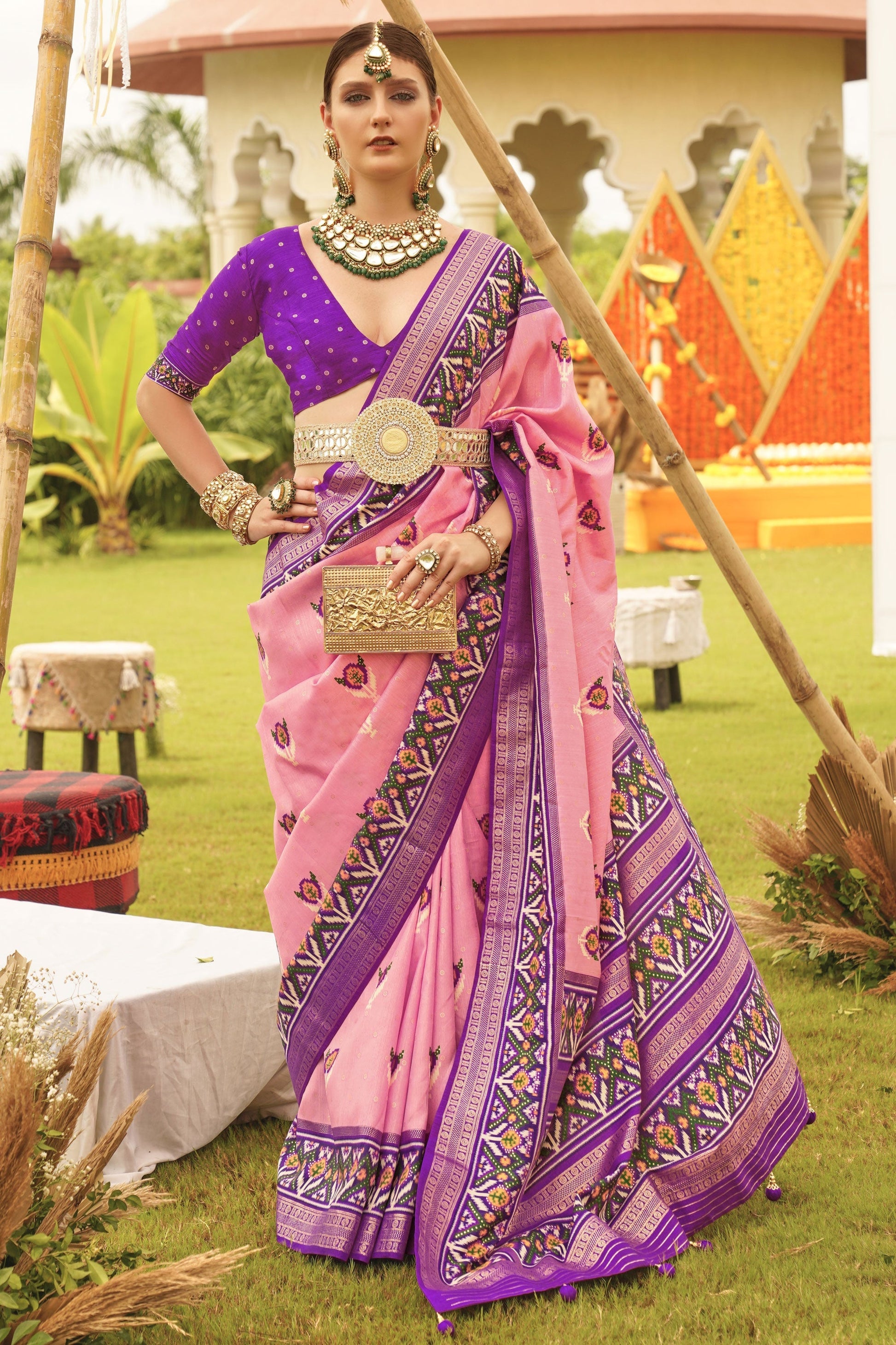 Text blockPink Patola Silk Designer Saree For Wedding Function