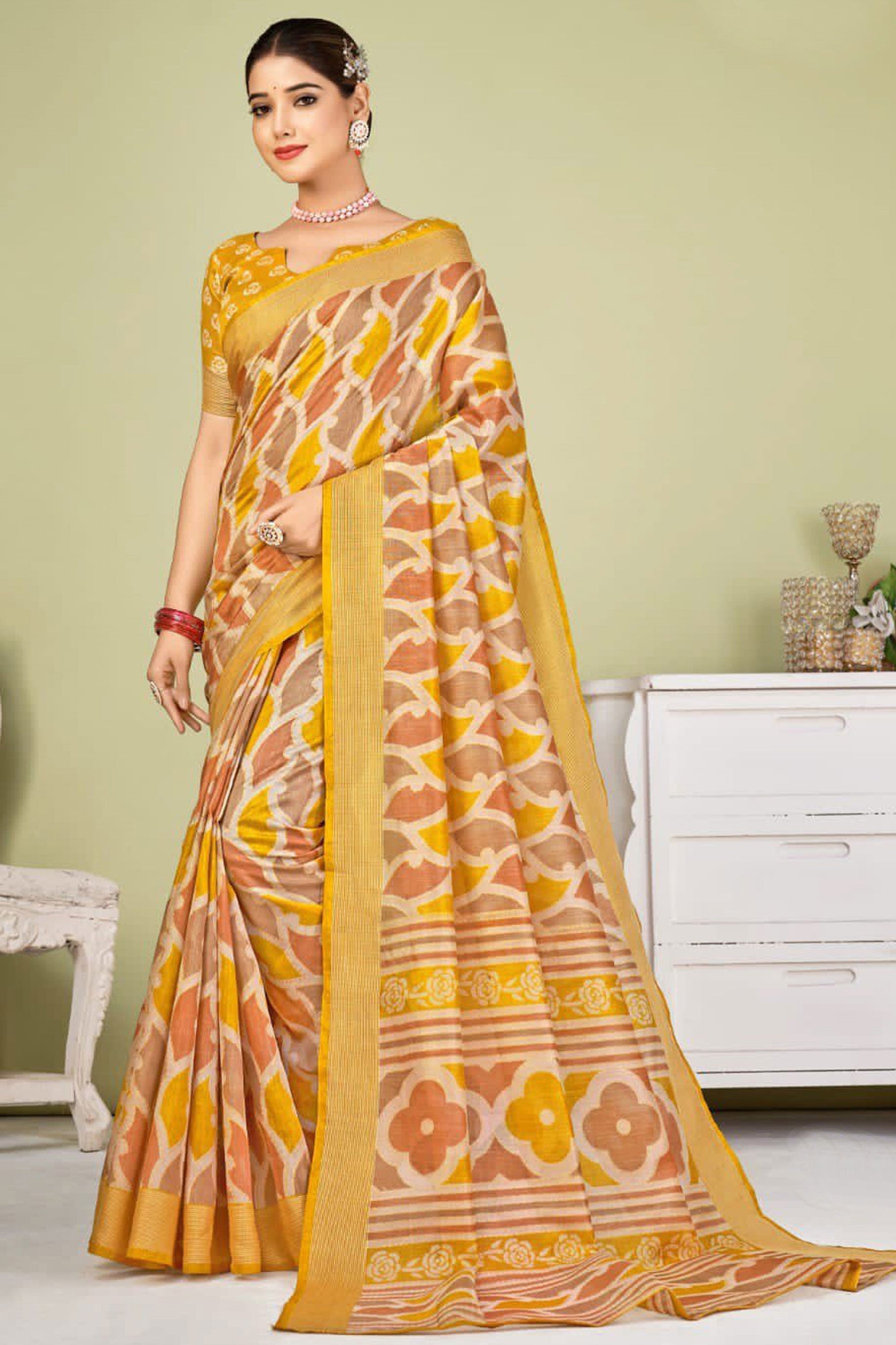 Text blockPrinted Art Silk Fabric Daily Wear Multi Color Saree