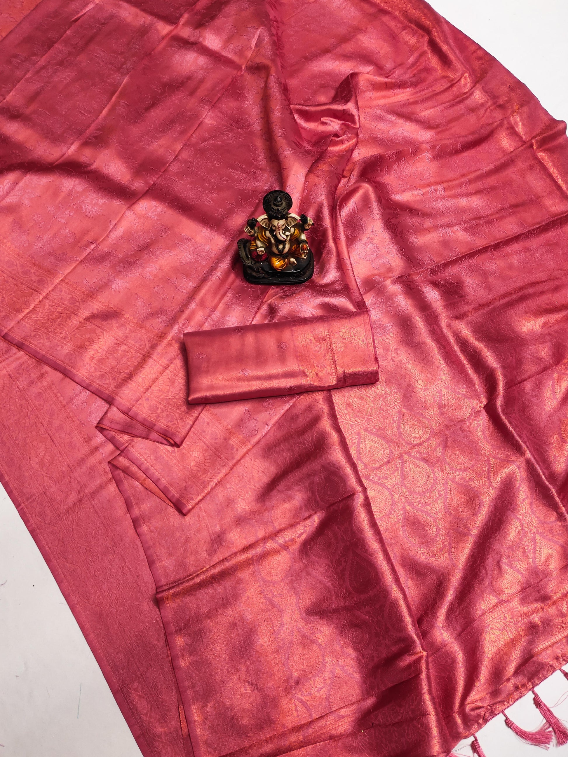 Peach Roza soft Silk Kanjivaram blends saree with beautiful weaving exclusive work
