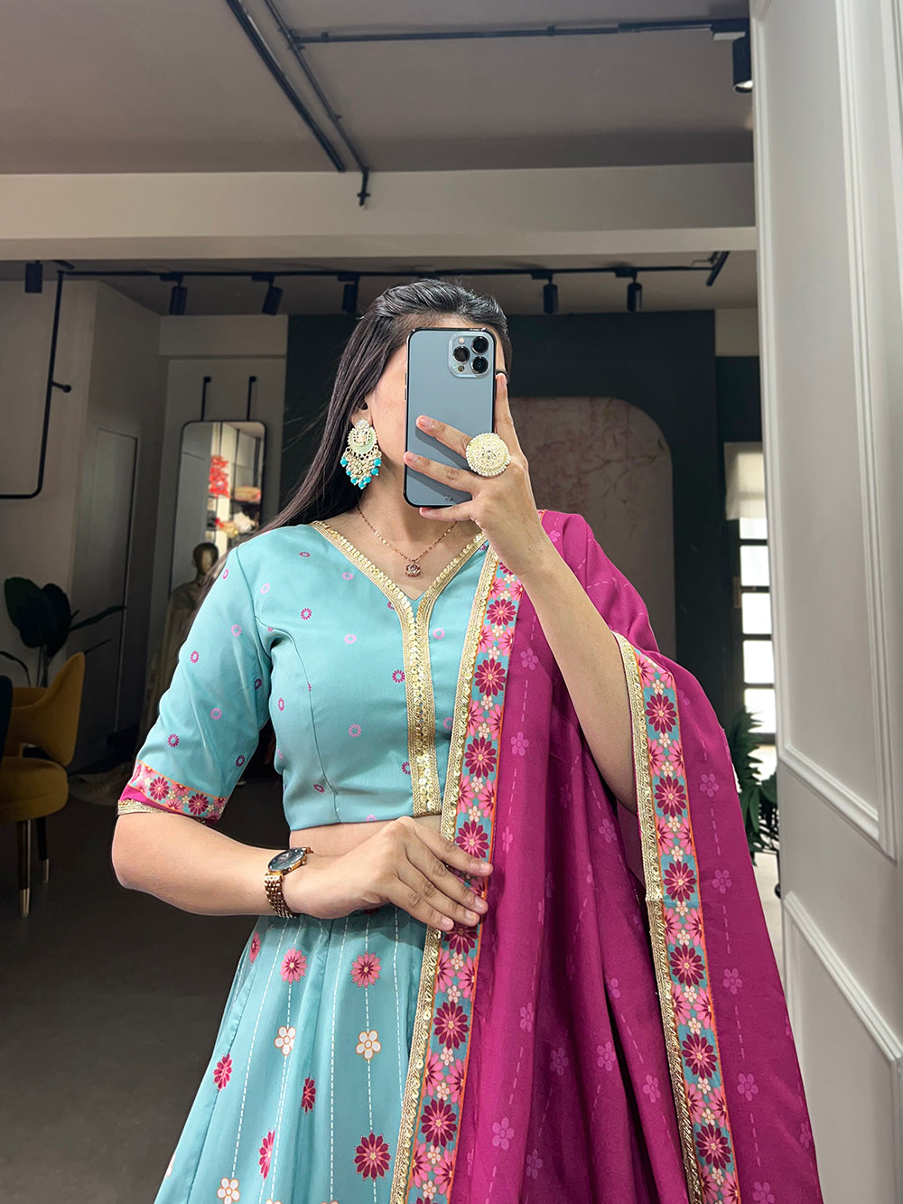 Sky Blue Color Printed With Sequins Lace Border Vaishali silk Lehenga Choli
