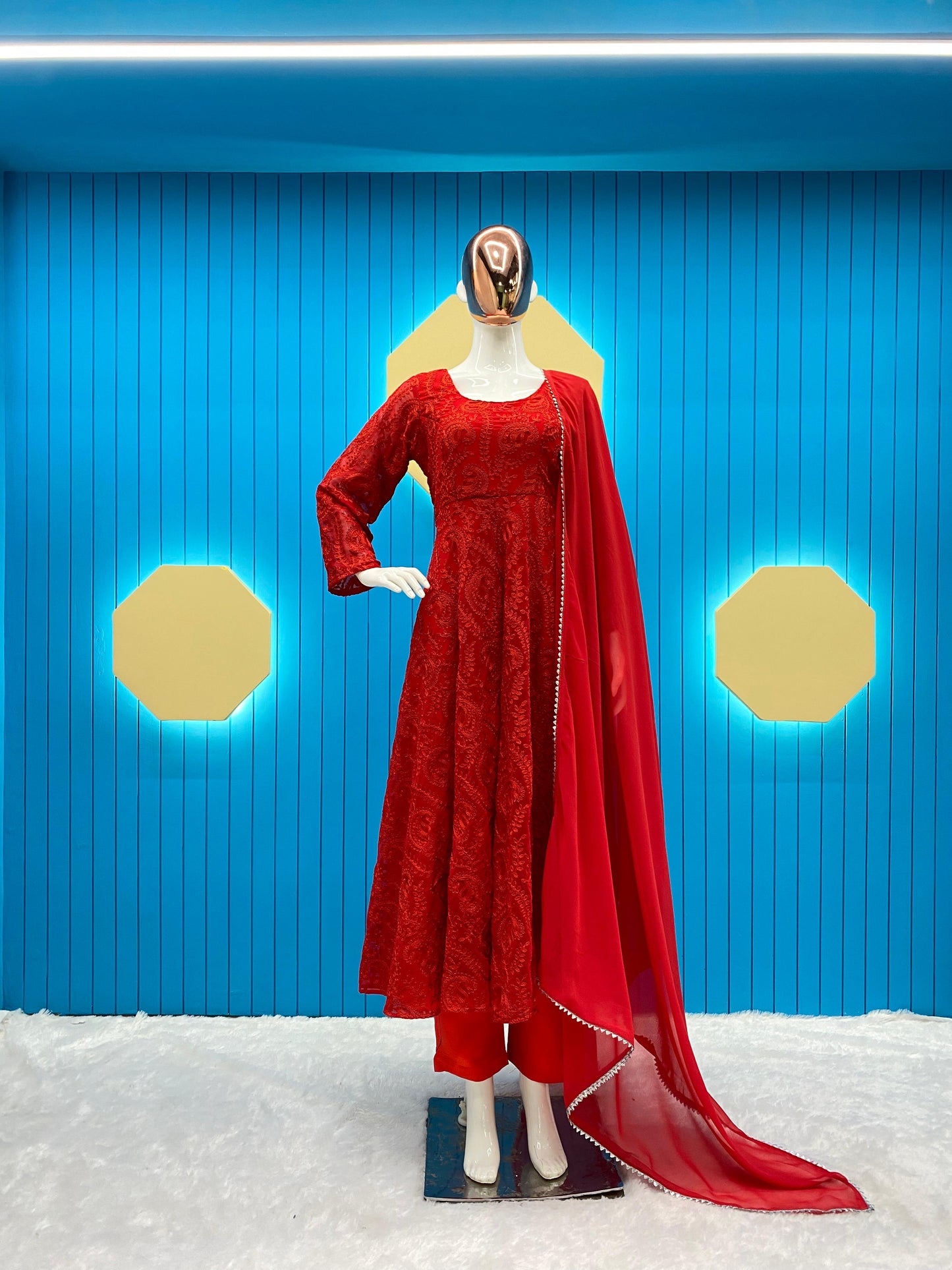 Text blockTrending Exclusve Georgette Fancy Designer Chain Embroidered Work Suit Whit Dupatta