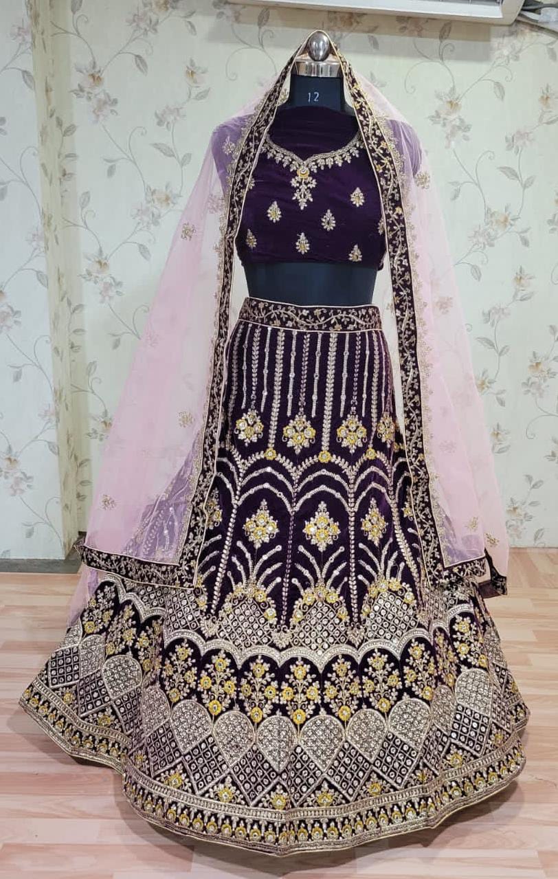 Text blockWine Colour Designer Zarkan Diamond Work Bridal Lehenga Choli