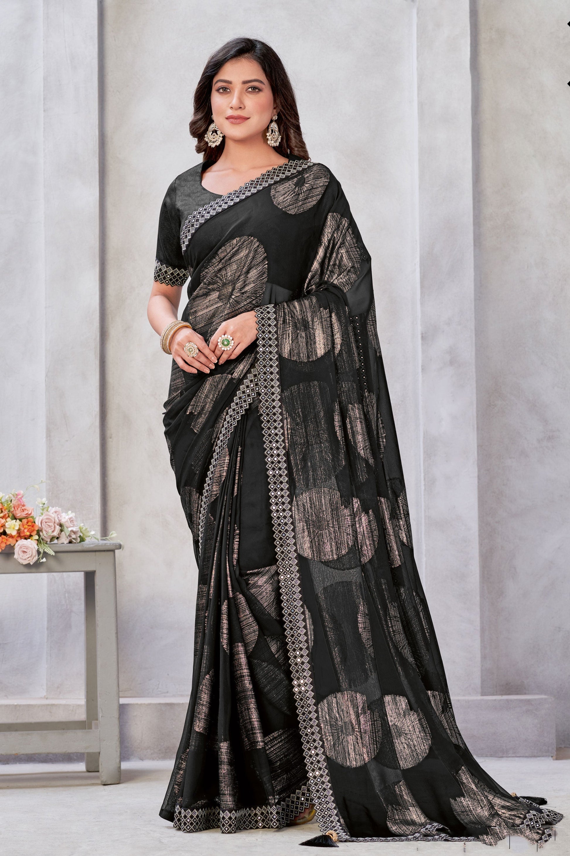 Zari Jacquard Weaving Work Attractive Georgette Saree In Black Color